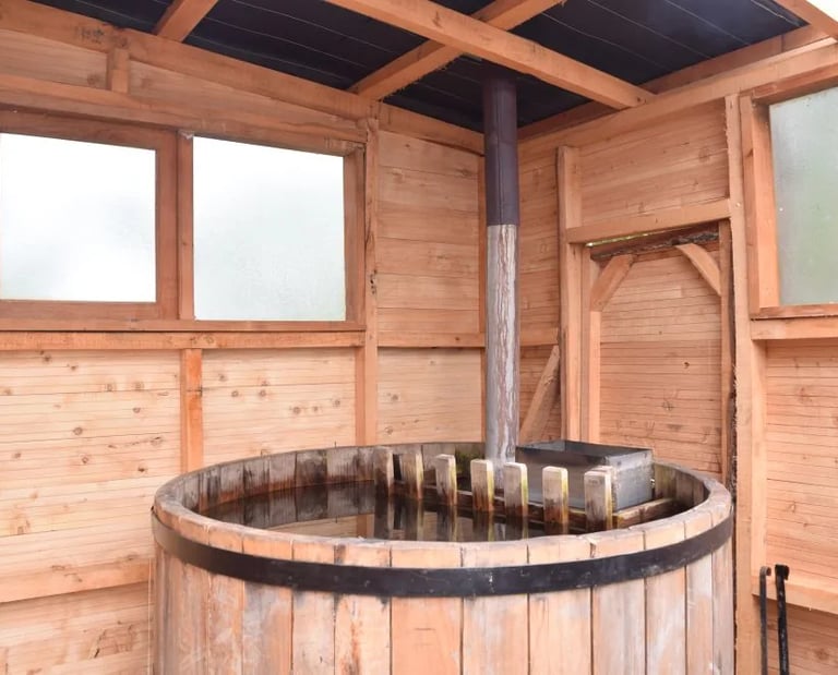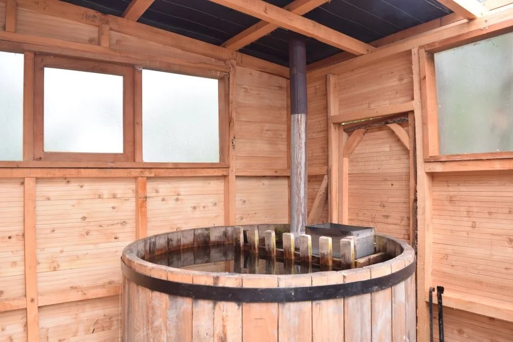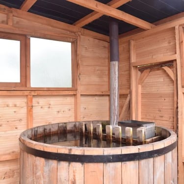 El alojamiento cuenta con tinajas de agua caliente como parte de la experiencia, pero su uso y condiciones específicas deben consultarse directamente al momento de reservar.