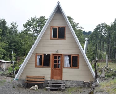 La cabaña se ubica en el sector de Pino Huacho, zona rural cercana a Lican Ray, dentro de la comuna de Villarrica, Región de La Araucanía.