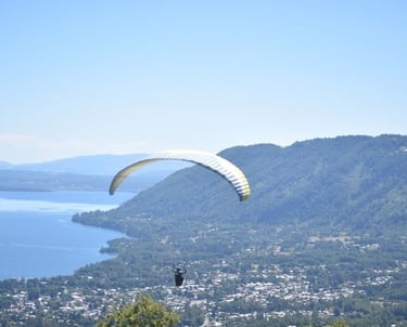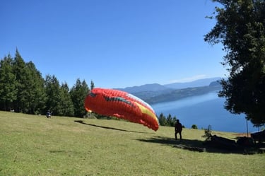 Parapente Cerro Challupen se desarrolla en un entorno natural privilegiado, en las cercanías de Licán Ray, donde el relieve del cerro y las condiciones del paisaje permiten disfrutar amplias vistas al lago y a los bosques que rodean la zona. La ubicación combina altura, naturaleza y un entorno despejado que realza la experiencia desde el primer momento.